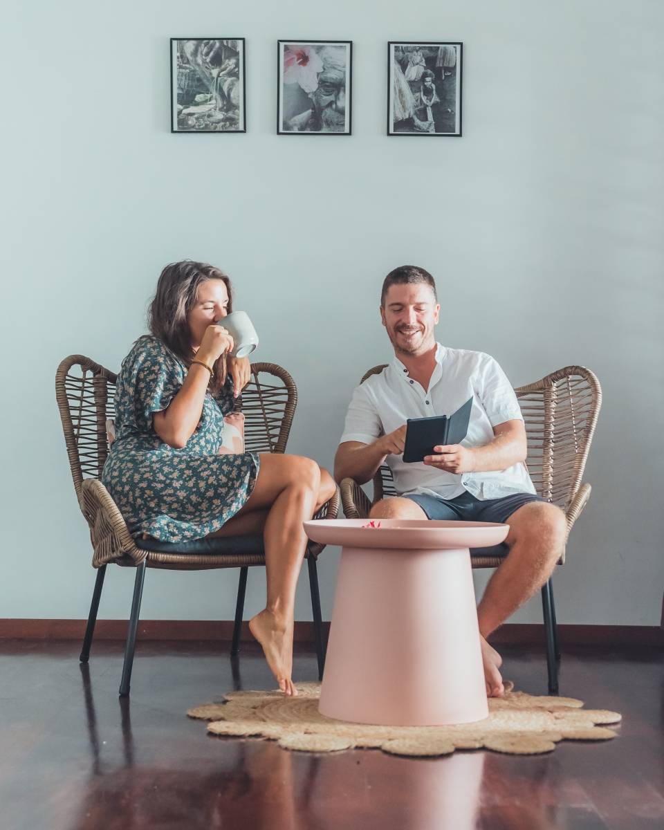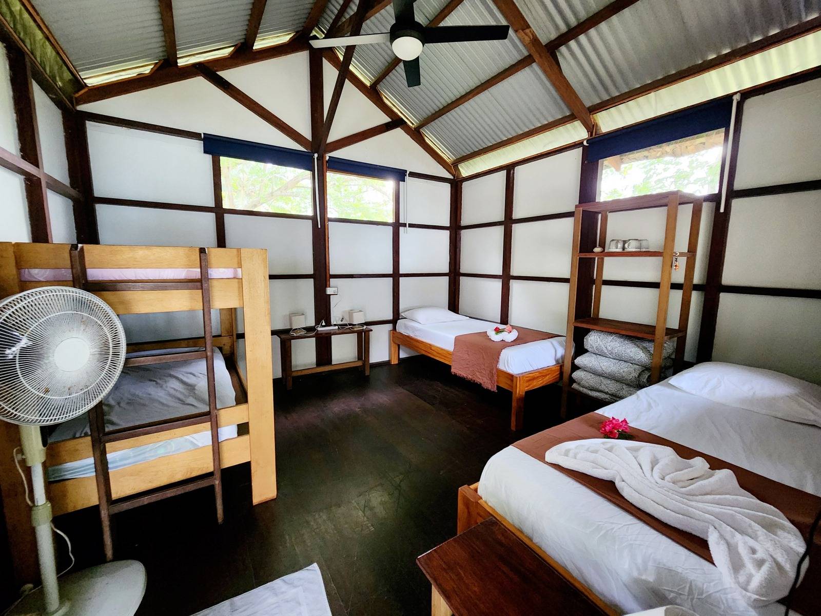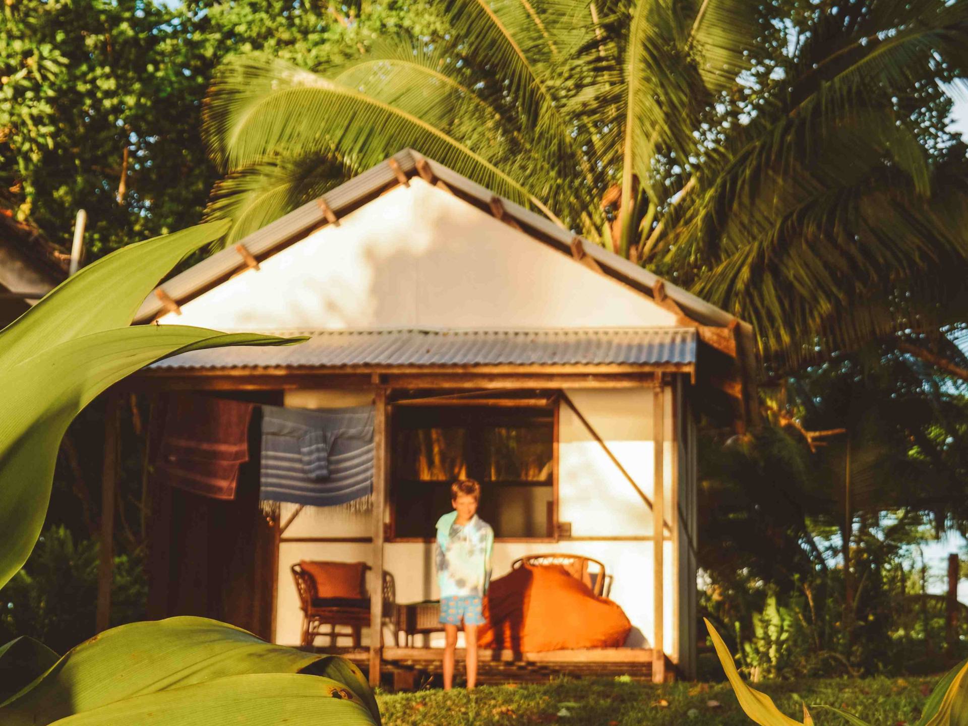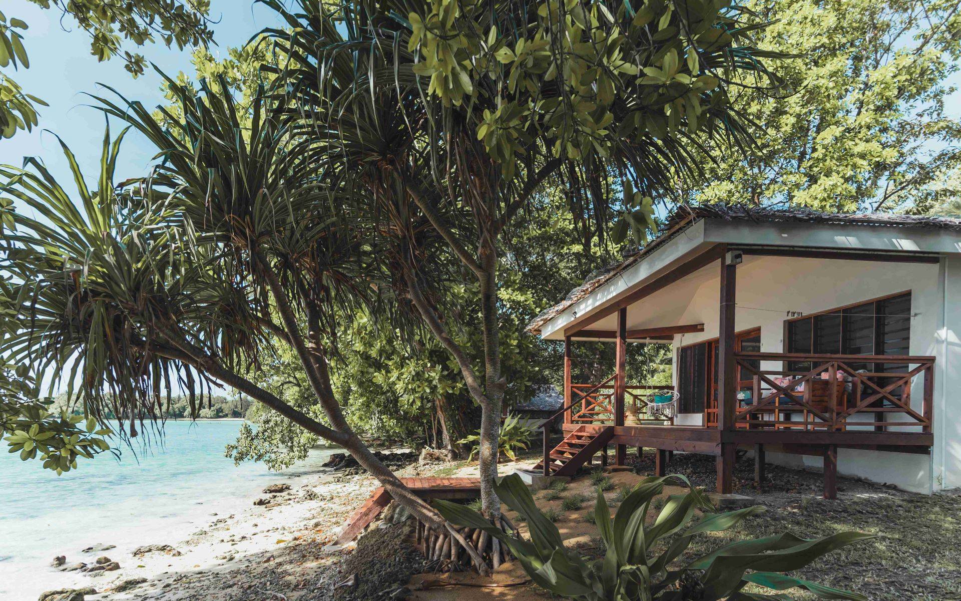 Each bungalow is equipped with a mini fridge, kettle, coffee plunger, mosquito protection, and a ceiling fan. Relax on your private wooden terrace, complete with lounge chairs and hammocks, where you can enjoy the refreshing sea breeze. The bungalows are thoughtfully spaced apart to ensure privacy and intimacy. Your stay includes a complimentary continental breakfast, Wi-Fi, and access to our kayaks, stand-up paddleboards, and snorkeling gear.